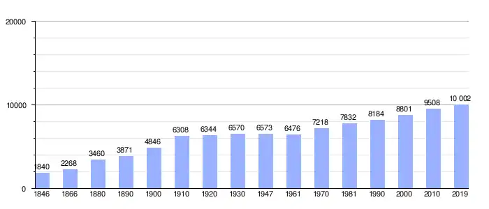 Todos los datos históricos relativos al actual municipio, el siguiente gráfico refleja su evolución demográfica, incluyendo municipios después de efectuada la fusión el 1 de enero de 1977.