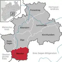Wenden es un municipio situado en el distrito de Olpe, en el estado federado de Renania del Norte-Westfalia (Alemania), con una población a finales de 2016 de unos 19 728 habitantes.[2]