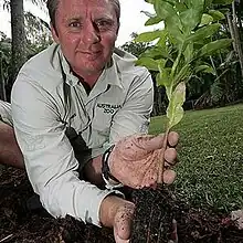 Wes Mannion plantando un árbol en honor de su amigo Steve Irwin.