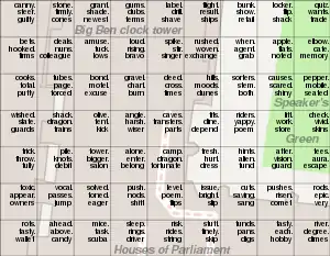 ![]() Parte de la cuadrícula de What3Words sobre las Casas del Parlamento en Londres mostrando las palabras y su distribución pseudoaleatoria. | ||