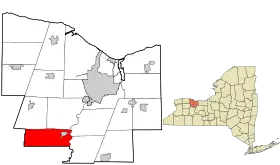 ![]() A la izquierda, ubicación en el condado de Monroe. A la derecha, ubicación del condado de Monroe en el estado de Nueva York