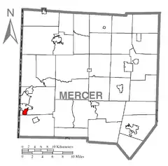 ![]() Ubicación en el condado de Mercer ![]() Ubicación del condado en Pensilvania ![]() Ubicación de Pensilvania en EE. UU. | ||