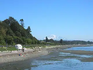 ![]() Playa de White Rock con su famosa roca blanca y de fondo el Monte Baker