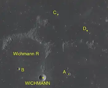 Por convención estos elementos son identificados en los mapas lunares poniendo la letra en el lado del punto medio del cráter que está más cercano a Wichmann.