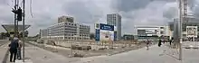 Al sur, la plaza limita con un lateral (de 230 metros) de la Hauptbahnhof. Otros edificios significativos de la plaza son la Prager Spitze (centro comercial acristalado con planta en forma de flecha) y el Kugelhaus (dos bloques cúbicos unidos por una enorme esfera de cristal).
