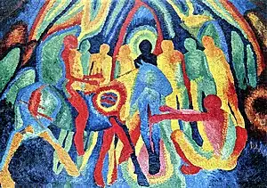 Wilhelm Morgner (Soest, 27 de enero de 1891 - Langemark, 16 de agosto de 1917) fue un pintor expresionista alemán. Alumno de Georg Tappert, pintor vinculado a la colonia de artistas de Worpswede, cuyo paisajismo lírico le influyó inicialmente, evolucionó más tarde a un estilo más personal y expresivo, influido por el cubismo órfico, donde cobran importancia las líneas de color, con pinceladas puntillistas que se yuxtaponen formando algo parecido a un tapiz. Al acentuar el color y la línea abandonó la profundidad, en composiciones planas donde los objetos se sitúan en paralelo, y las figuras suelen representarse de perfil. Desde 1912 cobró importancia en su obra la temática religiosa, en composiciones casi abstractas, con líneas simples trazadas con el color. Murió en la Primera Guerra Mundial.