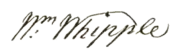 William Whipple Jr. (Kittery, 14 de enero de 1730-Nuevo Hampshire, 28 de noviembre de 1785), fue capitán de barco, comerciante, miembro del Congreso Continental desde 1776 hasta 1779 y signatario de la Declaración de Independencia de los Estados Unidos como representante de Nuevo Hampshire. Hijo del Capitán William Whipple Sr. y su esposa Mary Cutt, nació en Kittery, Maine. Era descendiente de Samuel Appleton, colono temprano en Ipswich (Massachusetts). Se educó en una escuela común hasta que se fue al mar, y se convirtió en Maestro de Barcos a la edad de 21 años. Ganó su fortuna participando en el comercio del Triángulo de las Indias Occidentales Británicas y África, con cargamentos como madera, ron y esclavos.