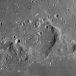 Quedan pocos restos del cráter original, aparte de una cresta baja curva. El contorno ha sido casi totalmente destruido en la cara noroeste, dejando solo unas cuantas crestas en la superficie. El resto forma una herradura irregular, con la parte occidental unida a una serie de crestas que conducen al oeste. El suelo interior ha resurgido por el efecto de flujos de lava basáltica, formando una superficie plana, casi sin rasgos distintivos, marcada tan solo por un par de pequeños cráteres cerca del borde noreste.