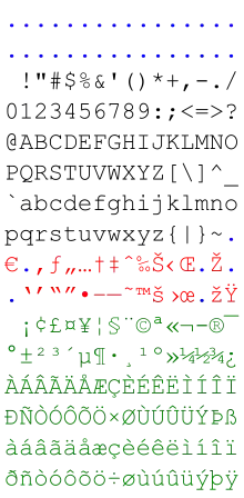 | Windows-1252 (CP1252) | ||||||||||||||||