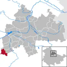 Se encuentra ubicado al norte de las ciudades de Erfurt y Weimar, y a poca distancia al oeste de la frontera con el estado de Sajonia-Anhalt.