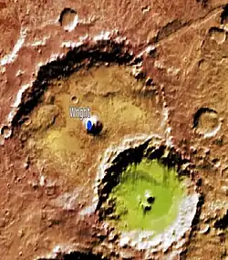 ![]() Cráter marciano Wright (colores virtuales) | ||