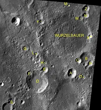 Por convención estos elementos son identificados en los mapas lunares poniendo la letra en el lado del punto medio del cráter que está más cerca de Wurzelbauer.