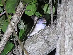 Se distingue por presentar una mancha blancuzca encima del anillo ocular, casi del mismo tamaño que el ojo verdadero.