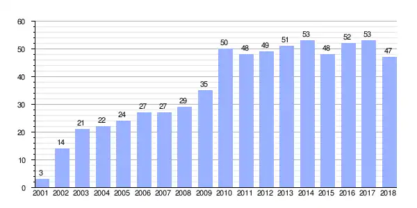 | Gráfica de evolución demográfica de Xesteira[1] entre 2001 y 2018 |