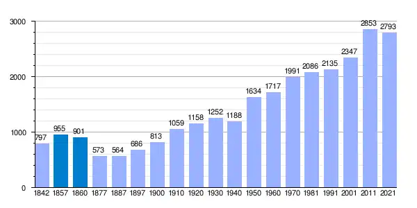 | Gráfica de evolución demográfica de Chilches/Xilxes[3] entre 1842 y 2021 |