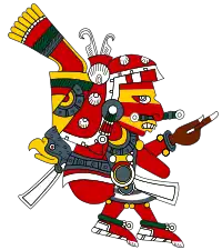Su origen es yope, cultura de la cual fue tomada esta deidad.[5] Era también un dios zapoteca.[6] Este es el Tezcatlipoca Rojo en la teogonía de la creación mexica.[7]