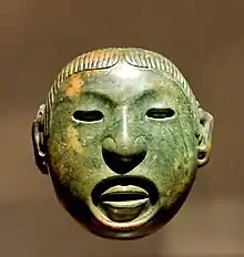 Desde el paleolítico el ser humano ha utilizado máscaras confeccionadas con madera, paja, corteza, hojas de maíz, tela, piel, cráneos, cartón piedra, y otros materiales. Las máscaras pueden cubrir la cara, la cabeza entera o la cabeza y los hombros. En algunos casos las máscaras no son para la cara, por ejemplo, los sacerdotes personificaban al Dios utilizando pieles humanas, las pintaban de amarillo y eran conocidas como teocuitlaquemitl ('vestiduras doradas').[16] Estas las utilizaban para renovarse, y también les servían de protección; normalmente a las máscaras se le confiere otra identidad, sirve como para representar un tipo de retrato. Las máscaras rituales por lo general representan deidades, seres mitológicos, espíritus benignos y malignos de antepasados, muertos, animales y otros seres que se cree que poseen poder sobre el género humano.[17]