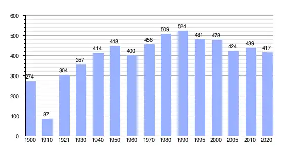 En 2020 registró una población de 417 personas, lo que corresponde al 2.36 % de la población municipal.[1][8] De los cuales 298 son hombres y 307 son mujeres.[1][8]