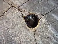 - Esta obra contiene una traducción derivada de «Carpenter bee» de Wikipedia en inglés, publicada por sus editores bajo la Licencia de documentación libre de GNU y la Licencia Creative Commons Atribución-CompartirIgual 4.0 Internacional.