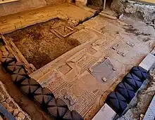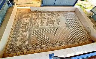 ![]() Mosaico de los Amores de Zeus, descubierto en 2015 y reubicado en 2019 tras su restauración. | ||