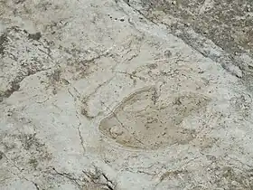 - Icnitas: variable. Las icnitas se encuentran débilmente marcadas sobre las láminas más superiores de los estratos. En algunos sectores se han borrado por erosión del techo del estrato, debido a la disolución por parte del agua o por el desgaste producido por las corrientes de aguas cargadas de sedimento.