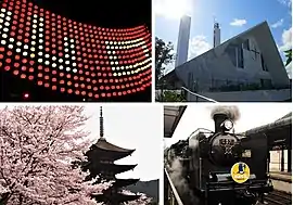 Festival de los farolillos de papel "Chochin Matsuri", Iglesia Católica de S. Francisco Javier, Pagoda del templo Rurikoji y tren de vapor "Yamaguchi".