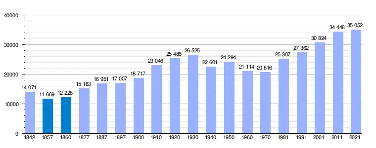 | Gráfica de evolución demográfica de Yecla[17] entre 1842 y 2021 |