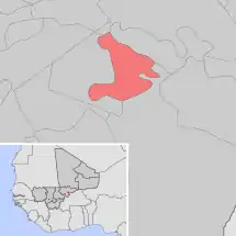 Se encuentra ubicada en el centro del país, junto a la frontera con Burkina Faso y a poca distancia al sur del río Níger.
