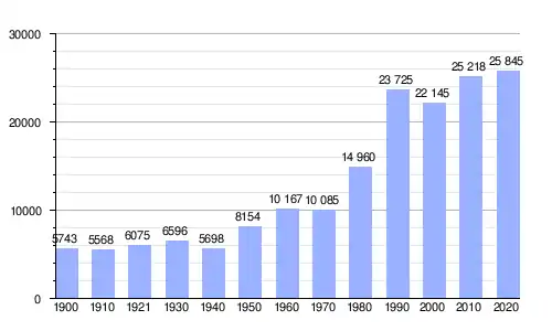 | Gráfica de evolución demográfica de Yuriria entre 1900 y 2020 |