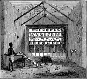 Un objeto de cualquier clase venerado por superstición por etnias nativas de África occidental, usadas para encantamientos, como amuletos o como medio de protección o fetiche. También el poder mágico o sobrenatural, o el sistema de ritos conectados con ellos, también una prohibición o evitación efectuada por medio de dicho objeto (similar al tabú de los polinesios).[4]
