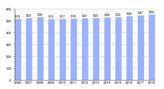 | Gráfica de evolución demográfica de Yvrac-et-Malleyrand entre 2006 y 2018 |
