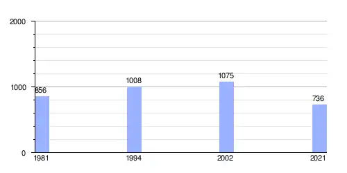 Hasta 2021 la población era de 736 habitantes,[2] con una densidad de población de 282,2 habitantes por kilómetro cuadrado.[2]