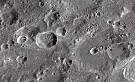 Por convención estos elementos son identificados en los mapas lunares poniendo la letra en el lado del punto medio del cráter que está más cercano a Zagut.