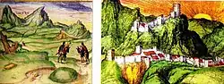 Los grabados incluidos en la obra de 1599 Civitates Orbis Terrarum, editado por Braun y Hogemberg nos acercan a lo que fue dicha fortaleza, que aunque no son exactamente ejemplo de mapas cartográficos si reflejan la disposición paisajística de la villa y la configuración de la fortaleza. Se conservan dos de la Villa de Zahara. La primera vista se dibuja en el camino de Mallaga a Xeres, la otra perspectiva, situada en el camino de Xeres a Mallaga, nos presenta también un territorio vacío de vegetación y vida agropecuaria.