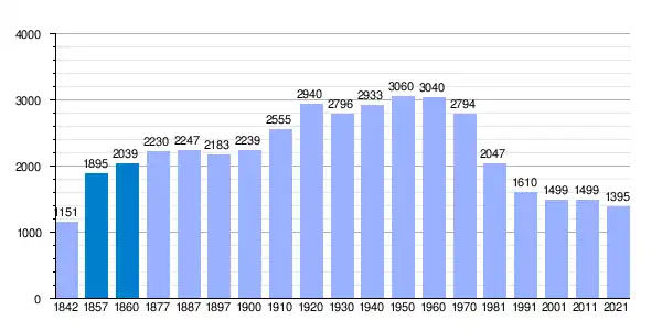 En 1940 la población se mantuvo prácticamente igual que en 1930, ascendiendo ligeramente el dato de población en 1950. A partir de 1960 el municipio comenzó a experimentar población, debido apararentemente al éxodo rural experimentado por tantos pueblos de reducida cantidad de habitantes. El descenso se cortaría en la década de los 90, tras perder a la mitad de la población, manteniéndose dicha cifra estable hasta la década actual, donde marcado por las dinámicas demográficas nacionales (con especial afectación en municipios de una población contenida y una ubicación algo aislada de las cabeceras provinciales) vuelve a descender población.