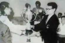 ![]() Haque (der.) recibiendo el premio al mejor futbolista por la Asociación de Escritores Deportivos en 1964 como capitán del Mohammedan. | ||