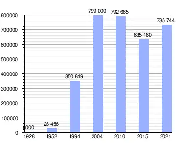 | Gráfica de evolución de Zarqa entre 1928 y 2021 |