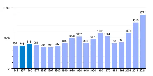 Gráfica de evolución demográfica de Zarzalejo[3] entre 1842 y 2021