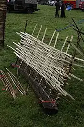 Wikcionario tiene definiciones y otra información sobre zarzo.- Esta obra contiene una traducción total derivada de «Wattle (construction)» de Wikipedia en inglés, concretamente de esta versión, publicada por sus editores bajo la Licencia de documentación libre de GNU y la Licencia Creative Commons Atribución-CompartirIgual 4.0 Internacional.