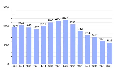 | Gráfica de evolución demográfica de Zavattarello entre 1861 y 2001 |