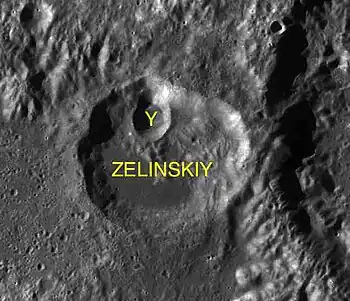 Por convención estos elementos son identificados en los mapas lunares poniendo la letra en el lado del punto medio del cráter que está más cercano a Zelinskiy.