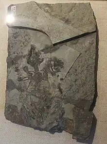 ![]() Fósil de Zhangheotherium quinquecuspidens exhibido en el Museo de Ciencia de Hong Kong. | ||