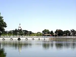 Estos tres lagos (del Sur, Central y del Norte) eran originalmente un jardín imperial, con zonas verdes en las orillas de cada lago, cercados por una valla. La mayor parte de los pabellones, templos y sepulcros de la zona son de este periodo. Mientras que el Lago del Norte tenía un cariz religioso, en las orillas de los lagos Central y del Sur se construyeron palacios.