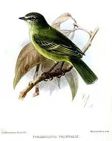 - Tyranniscus frontalis Richmond Index – Species and Subspecies – Division of Birds at the National Museum of Natural History, Washington, D.C.