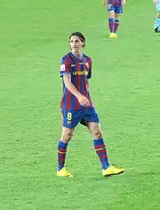 Su primer gol con el equipo catalán llegó el 31 de agosto de 2009, ante el Sporting de Gijón, durante la disputa de la primera jornada de la Primera División 2009-10. El partido finalizó 3:0 y su gol fue el tercero. Al término de la quinta jornada de la liga, igualó la mejor marca histórica de goles en las primeras cinco jornadas establecida por César Rodríguez en la temporada 1950-51, al conseguir un tanto en cada una de las cinco primeras jornadas, siendo en cuatro de ellas además, el primer gol.[75]