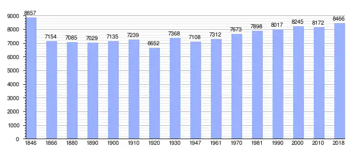 Todos los datos históricos relativos al actual municipio, el siguiente gráfico refleja su evolución demográfica, incluyendo municipios después de efectuada la fusión el 1 de enero de 1977.