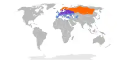 Solo una parte de la población migra, las aves se desplazan del norte hacia el sur durante el invierno. Se reproduce en bosques y matorrales en Escandinavia y la antigua Unión Soviética incluidos los estados bálticos, en Europa central su zona de reproducción llega hasta Holanda, Bélgica, Alemania, Suiza, y Francia. Si bien rara vez nidifica en Gran Bretaña e Irlanda, grandes bandadas pasan el invierno en estos países. Es usual que durante la migración y durante el período invernal las aves formen grandes bandadas, mucha veces junto con los zorzales alirrojos.