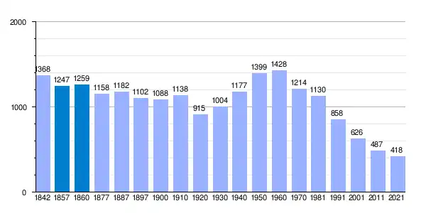 Población de derecho según los censos de población del INE. Población de hecho según los censos de población del INE. En 1857 disminuye el término del municipio porque independiza a Roperuelos del Páramo.[8] |