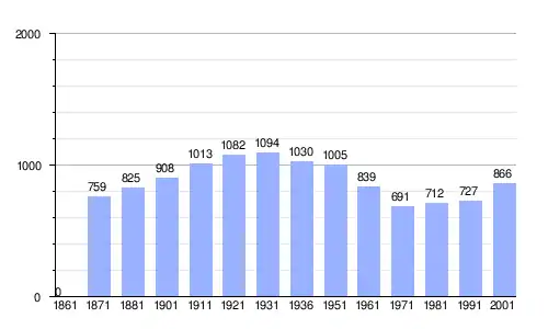 Gráfica de evolución demográfica de Zovencedo entre 1861 y 2001