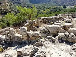 Cerca de este pueblo hay un yacimiento arqueológico donde se encontró una villa minoica de unos 700 m² (31 x 23 m), de al menos 20 habitaciones. Por los hallazgos de cerámica en este lugar se estima que la villa fue construida en el periodo minoico medio IIIB y que su destrucción se produjo, como muy tarde, en el minoico tardío IA, probablemente de manera simultánea a la villa de Klimatariá. La causa de la destrucción fue, según todos los indicios, un terremoto. Entre los hallazgos son numerosos los utensilios de cerámica y de piedra destinados a almacenamiento. En una de las habitaciones se ha encontrado una cabeza de la estatua de un ídolo. Han sido encontrados restos de otro edificio a unos 150 metros de esta villa.